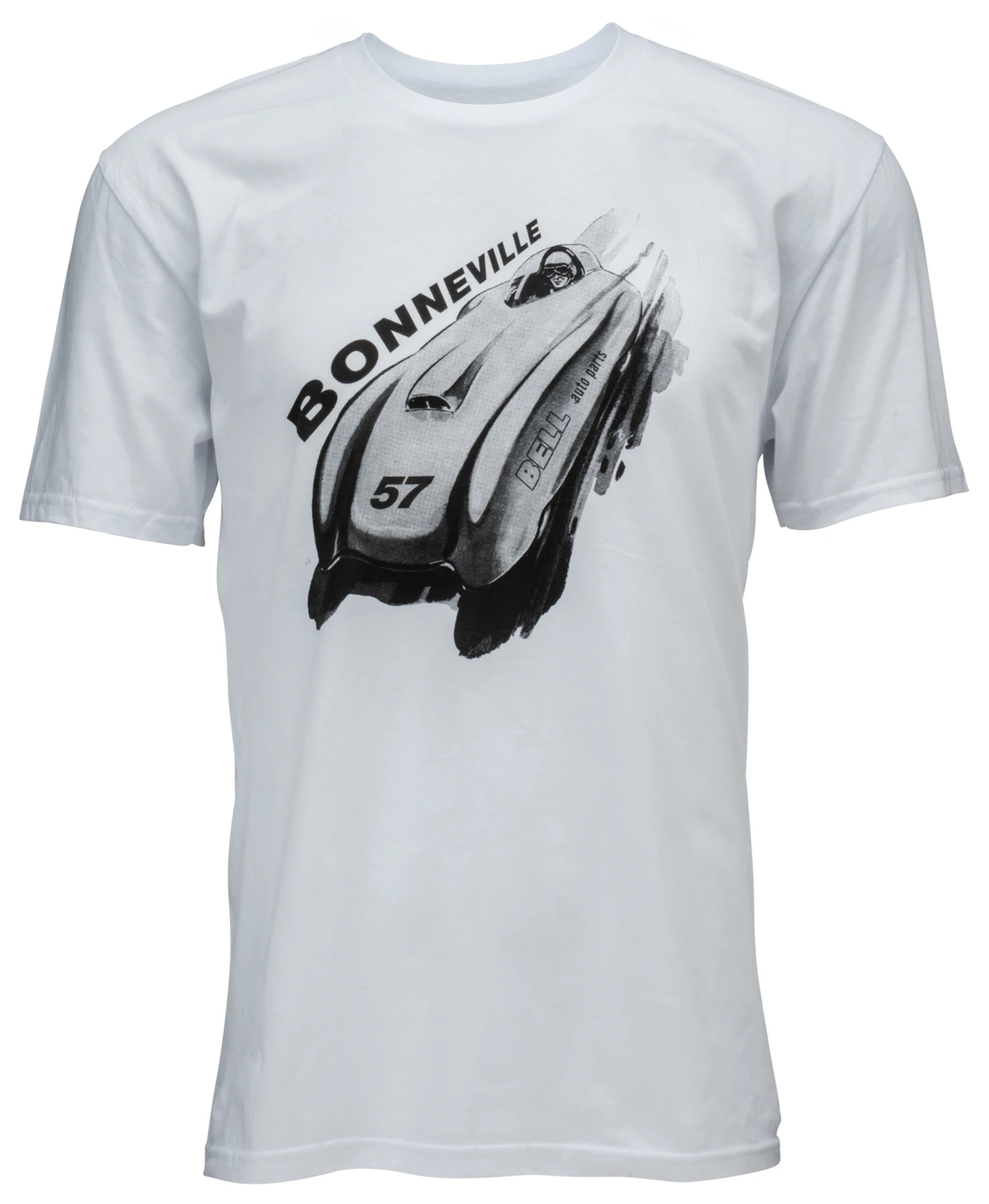 Thunderbolt and lightning, very, very frightening me. Relive those days of Streamliner glory at the Bonneville Salt Flat in the Bell Bonneville 57 Tee.