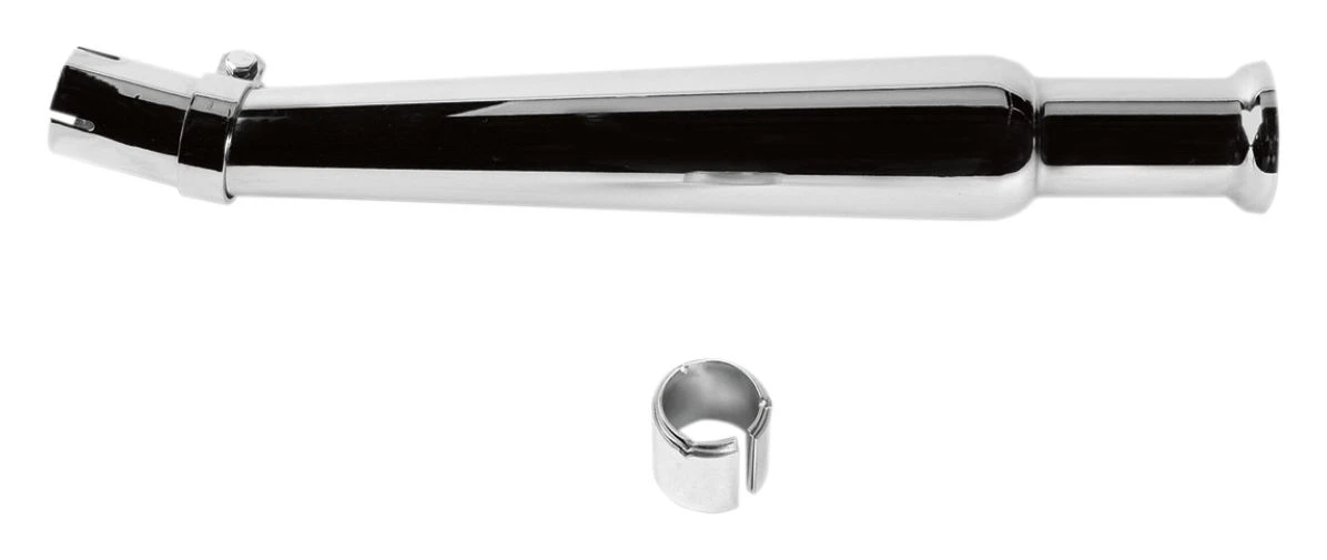 Retro styling brings back the glory days of choppers. The universal 1 3/4″ inlet comes with a reducer that allows additional fitment to 1 5/8″ and 1 1/2″ header pipes.