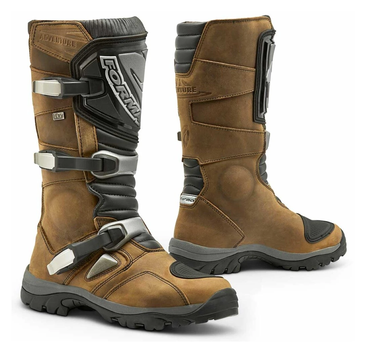 Designed specifically for ADV riders, the Forma Adventure HDry Boots combine the comfort and flexibility of a road boot with the protective features and full height of off-road boots. Equipped with a vintage leather finish and HDry extreme waterproof technology, the Adventure HDry Boots keep your feet dry without limiting range of motion. The double density sole offers superb grip on the bike and gives riders a comfortable and grippy surface to walk on when off the bike. Integrated TPU inserts and reinforcements provide protection from impact injuries and alloy buckles ensure you won’t be sidelined if you have a tip over.