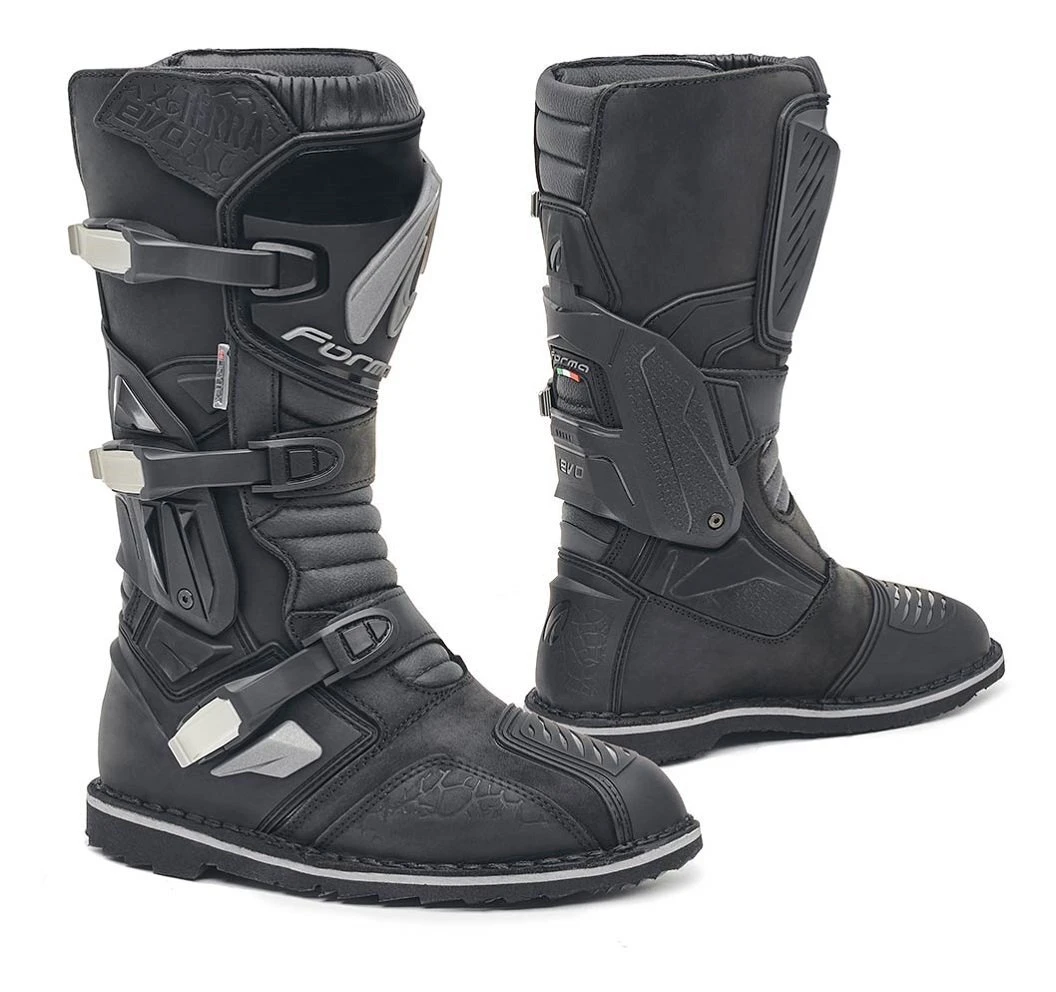 The Forma Terra EVO Dry X Series Boots bridge that gap between a dirt boot and a touring boot. The upper is constructed out of an oiled full-grain leather, and the welt sole is stitched on. A Drytex waterproofing keeps socks dry no matter the size of the puddle. Find yourself riding more on fire roads than superslabs, the Terra EVO X Boots will fit the bill.