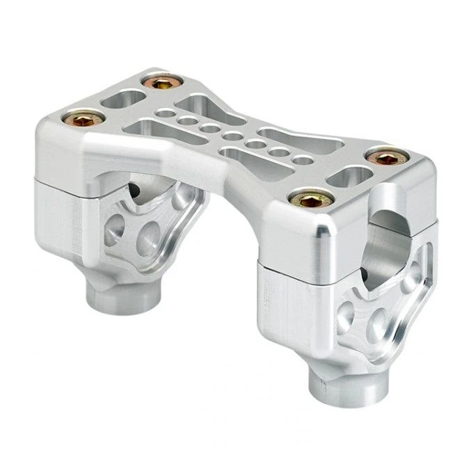 Replace your boring stock cast handlebar risers with one of these 2″ tall high performance billet aluminum riser sets for 1″ bars. Fully CNC machined racing styled design is made from solid 6061-T6 bar stock for maximum strength. Lightweight design top clamp gives your bike a unique cafe racer look.