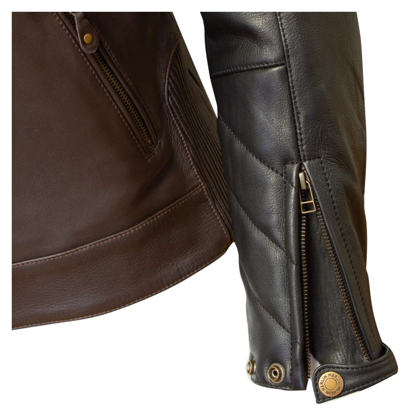 The Merlin Chase Jacket is a tracker-inspired leather jacket with loads of style and protection. Contrasting sleeves and body make for a sleek look while CE level 2 armor in the shoulders and elbows provide modern day protection. Pop open the 2 chest and single back vents for comfort and add in the optional back protector to beef up protection.