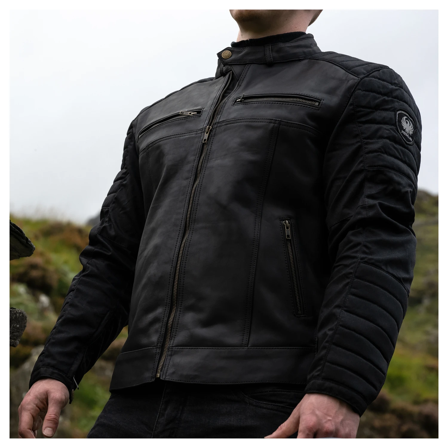 Leather and Cotec wax cotton combine to create a uniquely styled, highly protective jacket. The vest portion of the jacket is leather, while the sleeves are the Cotec technical wax cotton. These features combined with a full suite of D3O armor make sure you stay abrasion resistant as well as impact protected. A removable thermal gilet ensures you can stay warm when the temperatures drop, while the YKK antique effect zippers tie together the garment.