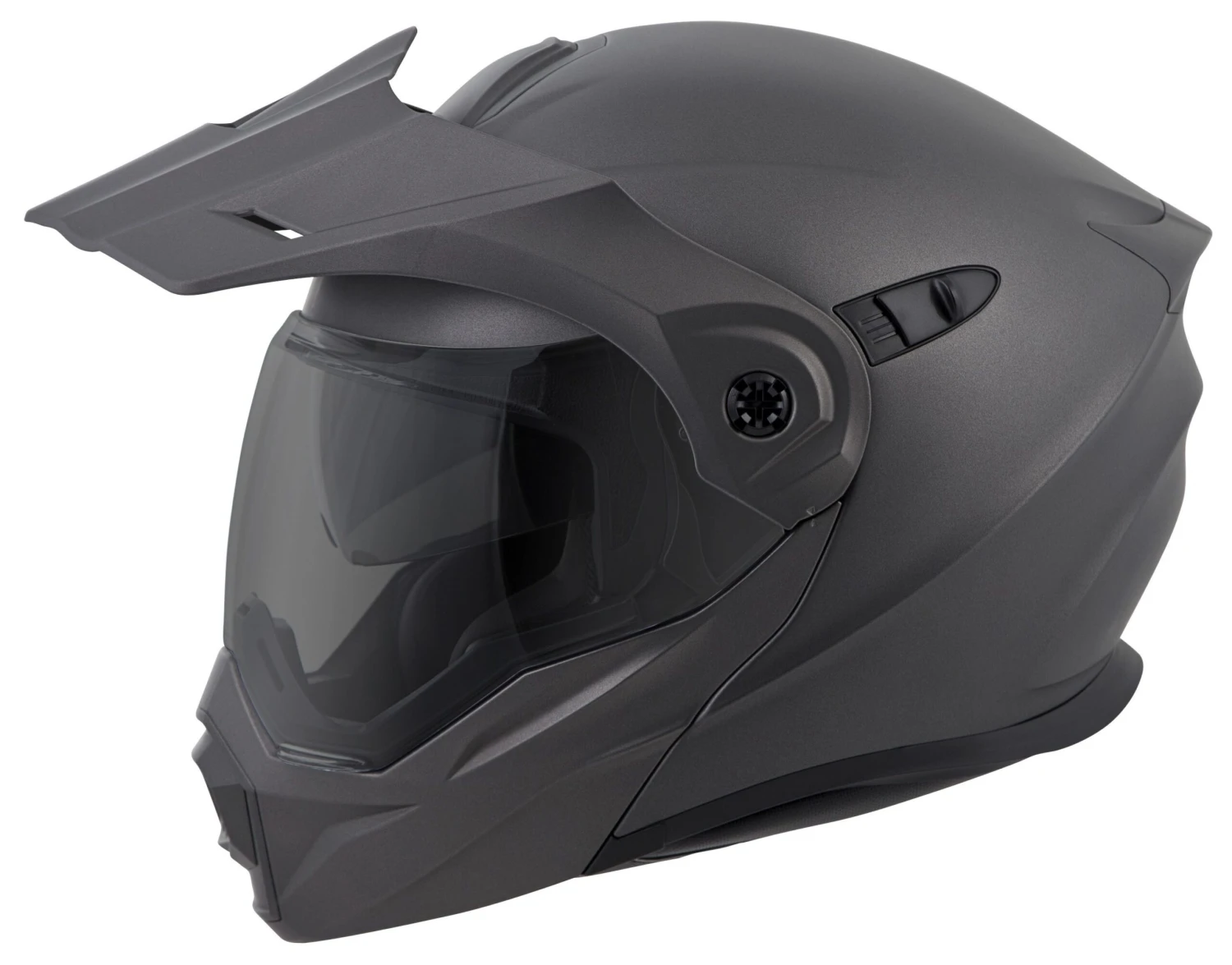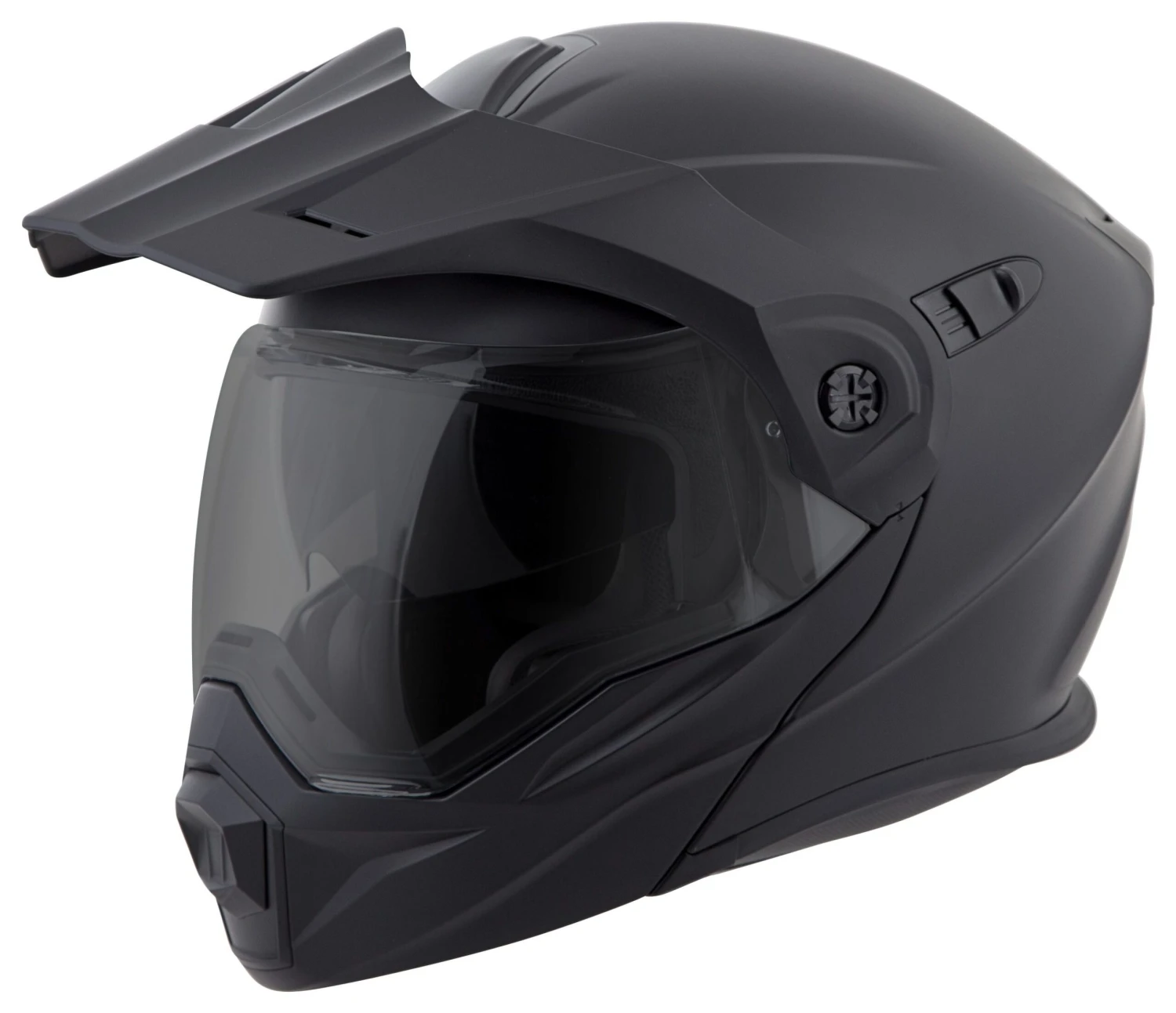 Scorpion has redefined a segment, melding the best features of touring helmets with the versatility of an off-road lid. Scorpion EXO-AT950 Helmet is the all-in-one swiss army knife of the helmet world. The modular chin bar allows you to relieve your claustrophobia or ask for directions while the off-road style peak and large eye port deflects roost, blocks the sun and allows you to wear goggles when tearing up the trails. Additional features such as a Everclear anti-fog face shield and Speedview drop-down internal sun visor keeps your vision clear and ready for whatever is around the next corner. If you’re going to be hitting the highway, the peak visor is easily removed to give you an aerodynamic profile so you can bug out at speed. Eyeglass compatible cheek pads and a KwikWick II liner ensures total comfort.Â